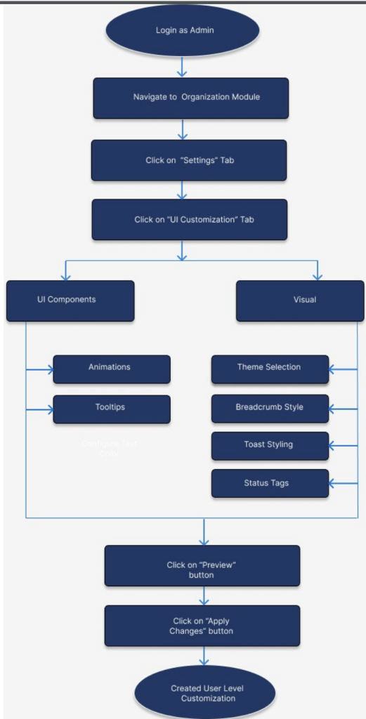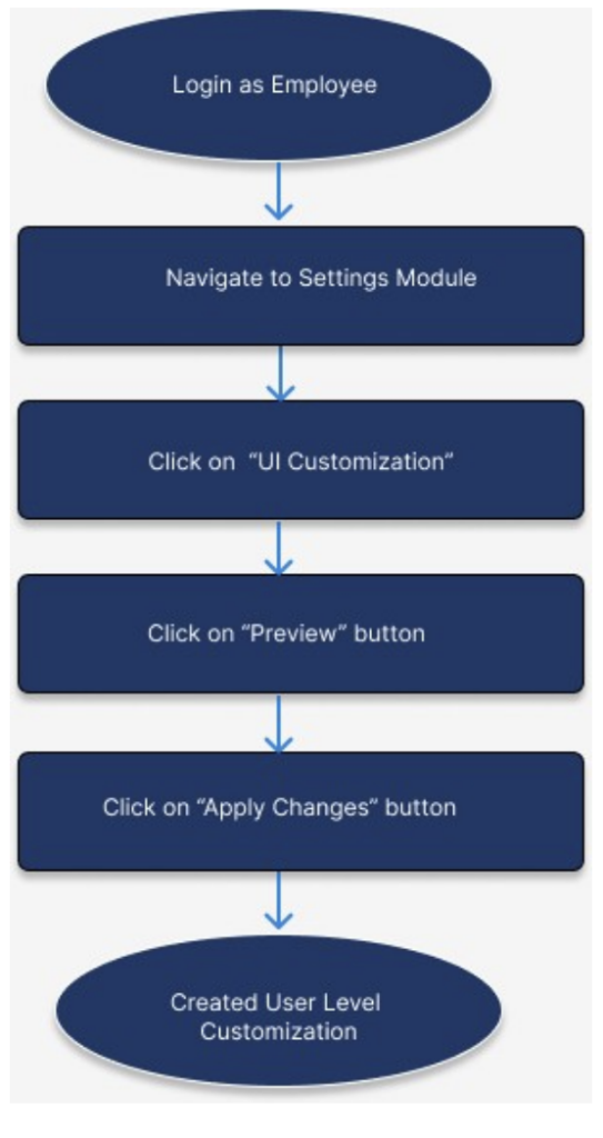 To ensure that your configurations are correct, click the Preview button. This will apply the configured UI Customization settings across the entire system. Once you are satisfied with the preview, proceed to finalize your changes.